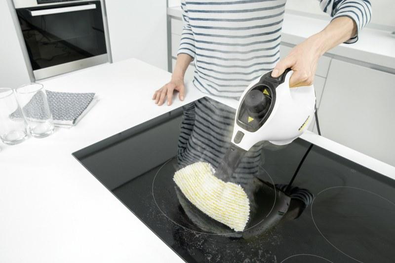 Kompaktni ročni parni čistilec SC 1 čisti popolnoma brez kemije in je uporaben praktično povsod v gospodinjstvu. Pri temeljitem čiščenju s Kärcherjevim parnim čistilcem bo odstranjenih 99,99 % vseh bakterij, ki so običajne na trdih površinah v gospodinjstvu. Zaradi svoje kompaktne, praktične velikosti je ta ročni parni čistilec optimalen za hitro medfazno čiščenje, ki prodira globoko v pore. Armature, ploščice, plošča za kuhanje, kuhinjska napa in celo najmanjiše reže in niše bodo temeljito očiščeni zahvaljujoč raznovrstnomu priboru in močni pari. Celo najbolj trdovratna umazanija in obloge maščob bodo zanesljivo odstranjene. Napravo lahko zaradi kompaktne oblike pospravimo direktno na mestu uporabe, ker zahteva zelo malo prostora.