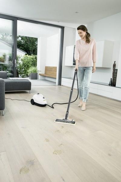 Model parnega čistilca za začetnike, SC 2 EasyFix, z enostavnim in intuitivnim rokovanjem, ima možnost regulacije pare v 2 stopnjah za prilagoditev intenzitete pare površini in stopnji umazanije. Predal za praktično pospravljanje pribora na napravi, kot tudi parkirni položaj za talno šobo so koristni detajli za še udobnejše čiščenje s paro. Fleksibilna talna šoba EasyFix zagotavlja maksimalno ergonomijo in zahvaljujoč lamelni tehnologiji zagotavlja izvrstne rezultate čiščenja. Krpo za tla iz mikrovlaken lahko po zaslugi praktičnega sistema pritiskačev enostavno in hitro fiksiramo na talno šobo in snamemo brez kontakta z nečistočami. Kärcherjev parni čistilec SC 2 EasyFix čisti popolnoma brez kemije in je zelo univerzalen. Pri temeljitem čiščenju bo odstranjenih 99,99 % vseh bakterij na običajnih trdih površinah v gospodinjstvu. Ob pravilni uporabi raznovrstnega pribora, bodo Vaše ploščice, plošča za kuhanje in napa pa celo najmanjše reže higiensko čisti. Celo najbolj trdovratna umazanija bo zanesljivo odstranjena.