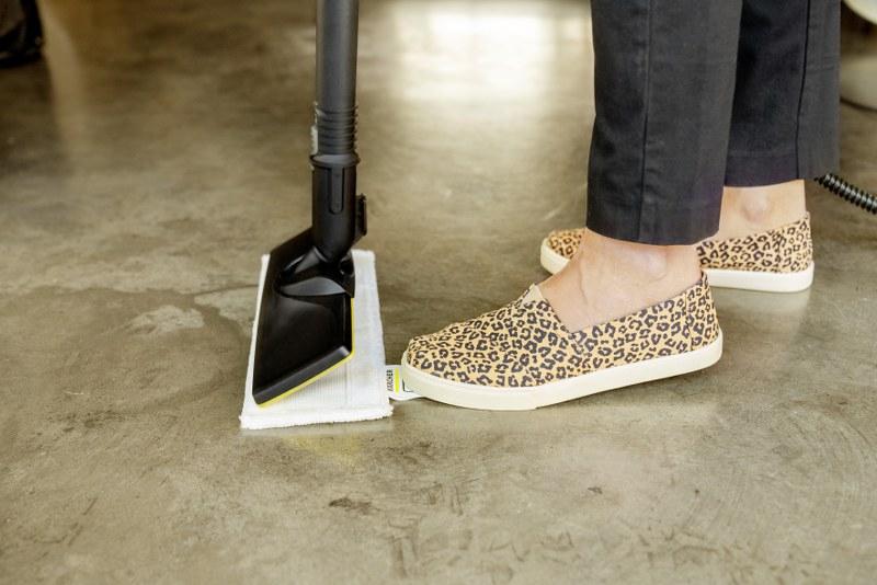 Uporaba pare za spopadanje z umazanijo: Kärcherjev parni čistilnik SC 2 Upright EasyFix očisti vse vrste gladkih trdnih talnih površin – tudi lesene. Pri čiščenju s Kärcherjevim parnim čistilnikom s prednastavljenim in enostavnim upravljanjem pretoka pare v dveh stopnjah odstranite 99,999 % koronavirusov* in 99,99 % vseh običajnih bakterij** z običajnih trdnih talnih površin. Parni čistilnik se segreje v zelo kratkem času in je opremljen z odstranljivo posodo z možnostjo sprotnega polnjenja med uporabo, vključno s kartušo za odstranjevanje vodnega kamna, zato je hitro pripravljen za uporabo. LED-trak na napravi z različnimi barvnimi kodami vas neposredno obvešča o stanju delovanja. Talna šoba EasyFix s sprijemalnim trakom v kombinaciji s Kärcherjevimi krpami iz mikrovlaken omogoča še temeljitejše čiščenje in hitro menjavo krpe brez stika z umazanijo.