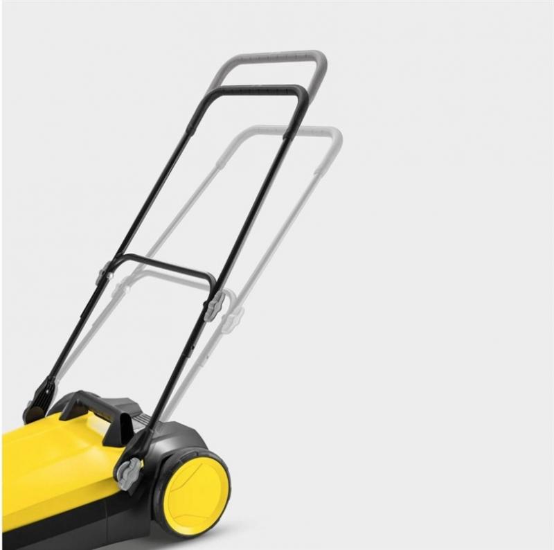 Cvetni listi spomladi, pesek poleti, listje jeseni in material za posipanje pozimi: učinkovit in ergonomski Kärcherjev stroj za pometanje S 4 Twin rekordno hitro in v vseh letnih časih poskrbi za sijočo okolico hiše in vrta. Z močnim pometalnim valjem, dvema stranskima krtačama in skupno širino pometanja 680 milimetrov z lahkoto očisti do 2400 m2 površine na uro. Stroj neposredno zbira umazanijo v 20-litrskem zbiralniku za smeti. Dolge ščetine stranskih krtač poskrbijo za temeljito čistočo vse do roba. Ročaj z brezstopenjsko nastavljivo višino je mogoče optimalno prilagoditi uporabnikovi telesni višini. Zahvaljujoč uporabljeni bajonetni spojki pri nastavitvi višine ne morete izgubiti vijaka. Stroj za pometanje lahko brez sklanjanja preprosto zložite s stopalko in ga prenašate z držanjem za ročaj ter prihranite prostor pri shranjevanju. Edinstvena je tudi namestitev stranskih krtač brez orodja. Tako je stroj za pometanje v hipu pripravljen za uporabo. Zbiralnik za smeti je mogoče preprosto odstraniti in ga odložiti brez stika z umazanijo ter izprazniti.