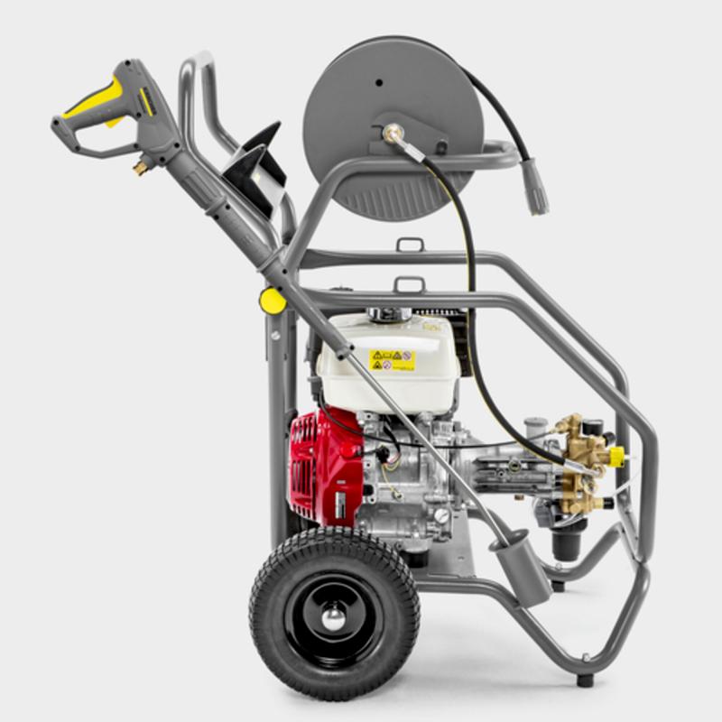Z zmogljivostjo tlaka 150 bar vam HD 7/15 G iz Gasoline Advanced serije zagotavlja najboljše rezultate čiščenja v vsakem trenutku. Visokotlačni čistilnik s hladno vodo na bencinski pogon je opremljen s Hondinim bencinskim motorjem, ki vam omogoča popolno neodvisnost od zunanjih virov električne energije. Poleg tega naprava lahko črpa tudi vodo iz ribnikov ali jezer in jo nato uporabi za čiščenje. Udobno delo omogoča EASY!Force visokotlačna pištola, ki uporablja reaktivno silo visokotlačnega curka in na ta način zniža zadržno moč na ničlo in EASY!Lock hitra zapirala, ki v primerjavi s tradicionalnimi vijačnimi spoji omogočajo 5-krat hitrejšo montažo in demontažo. Zasnovana je za uporabo v najbolj zahtevnih pogojih, z izjemno trpežnim osnovnim ogrodjem. Zahvaljujoč ergonomičnemu konceptu ogrodja je tudi presenetljivo mobilna, tako da boste napravo brez težav na kolesih transportirali tudi čez neravno podlago. Črpalko zanesljivo ščitita tudi velik vodni filter in termo ventil. Po želji lahko za napravo naročite zaščitno ogrodje Cage s pritrdilnimi ušesi za nakladanje z žerjavom ali komplet za montažo bobna za cev.