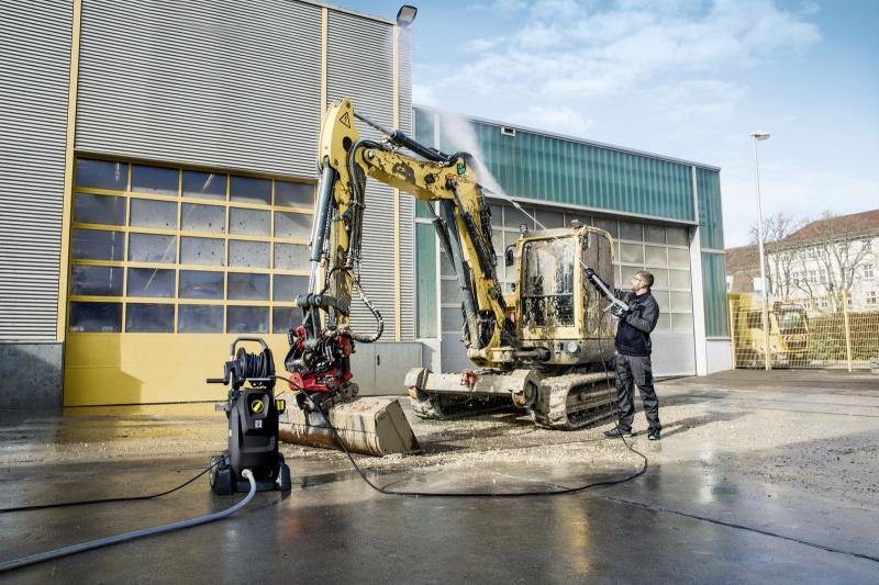 Odlični podatki o zmogljivosti (urna količina vode 700 l pri delovnem tlaku 160 barov) in priročen kolut za cev zaznamujejo HD 7/16-4 MX pri vsakodnevni komercialni uporabi.