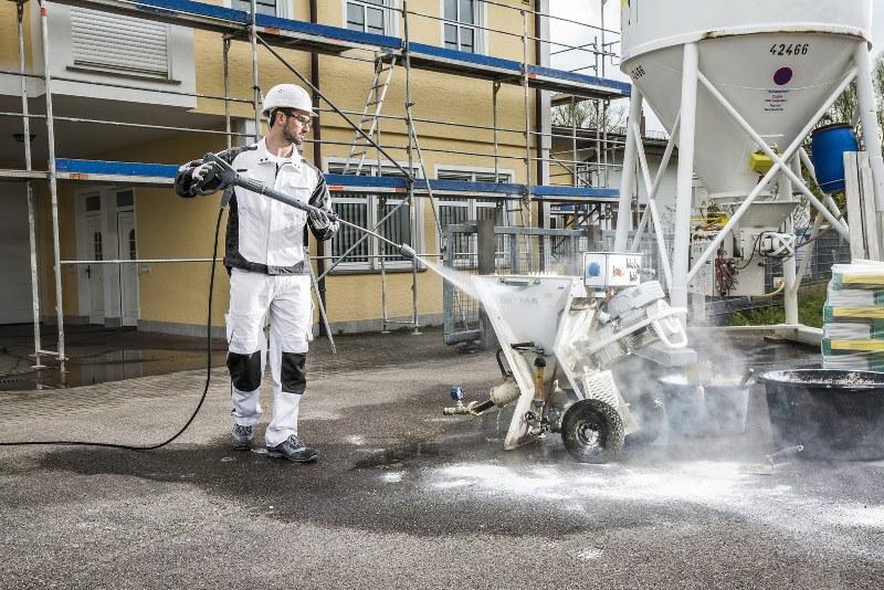 Visokotlačni čistilnik na vroči vodo HDS 5/15 UX Plus v kompaktni pokončni izvedbi z izjemno močjo. Vključuje močno šobo z vrtljivim curkom in kolut za cev s 15 m dolgo cevjo.
