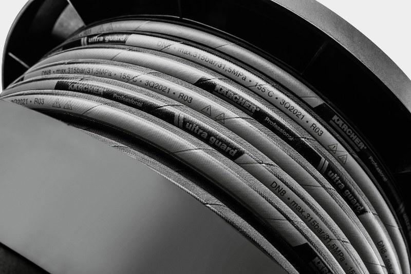 Ergonomičen, enostaven za uporabo: visokotlačni čistilnik na vročo vodo s samodejnim navijanjem cevi, varčnim načinom eco!efficiency in 4-polnim vodno hlajenim električnim motorjem.