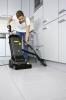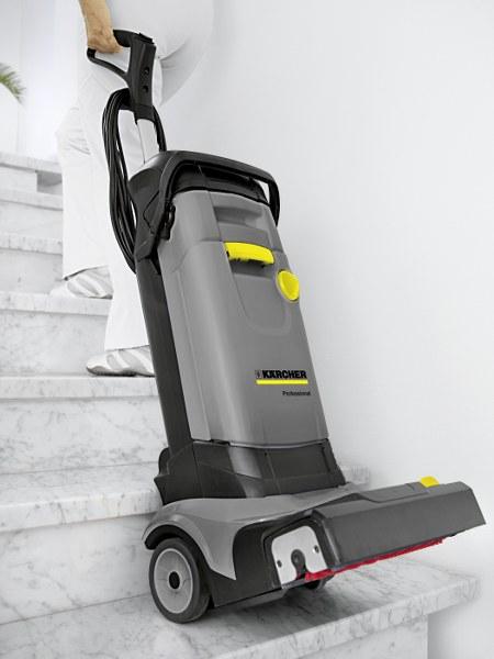 Zahvaljujoč svoji obliki lahko stroj vodite tako enostavno kot krtačni sesalnik. V primerjavi z običajnim brisanjem ima stroj prednost 10-krat močnejšega pritisnega tlaka in tako toliko višjo zmogljivost čiščenja. In to pri hitrosti valja 1500 obratov. Odsesava lahko naprej in v vzvratno smer. Pri trdovratni umazaniji lahko sesalni nosilec tudi dvignete. To skrbi za daljši čas učinkovanja delovne raztopine. Z izjemno ploščato krtačno glavo lahko dosežete tudi površine pod nizkim pohištvom in drugimi predmeti, kot so npr. radiatorji.