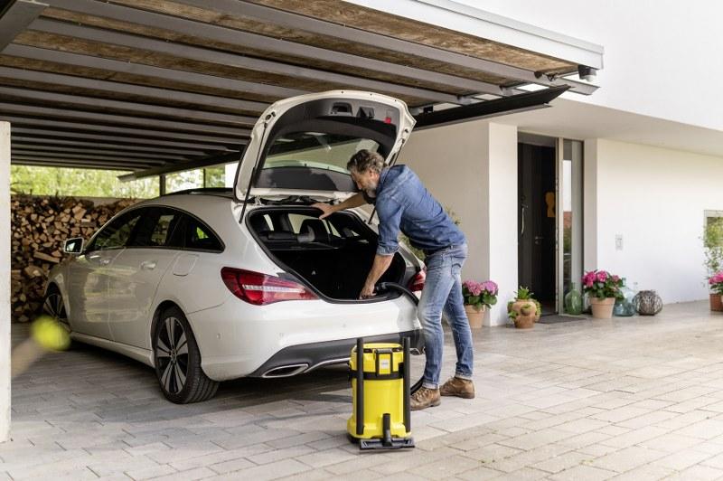 Brezmejno sesanje: sesalnik za suho/mokro sesanje WD 3-18 deluje na 18 V baterijski platformi Kärcher Battery Power in ponuja največjo prilagodljivost, kompaktno zasnovo in svobodo gibanja. Naprava odlično združuje 2 metra dolgo sesalno cev in talno šobo s sponkami ter lahko v trenutku odstrani mokro, fino ali grobo umazanijo. Naprava je opremljena tudi z robustno 17-litrsko plastično posodo, enodelnim kartušnim filtrom in filter vrečko iz flisa. Prostor za shranjevanje sesalne cevi prihrani prostor; preprosto ga varno obesite na glavo naprave. Nadaljnje funkcije vključujejo praktično funkcijo pihanja za področja, kjer sesanje ni mogoče, polico za shranjevanje dodatkov in majhnih predmetov, vrtljivo stikalo za preprost vklop in izklop naprave, ergonomsko oblikovan ročaj za prenašanje ter "Pull & Push" sistem zaklepanja, ki omogoča enostavno odpiranje in zapiranje posode. Parkirni položaj na odbijaču omogoča hitro in priročno shranjevanje cevi in ??talne šobe tudi med kratkim odmorom od dela. Obseg dobave vključuje tudi baterijo 18 V/5,0 Ah Kärcher Battery Power in polnilnik baterij.