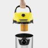 WD 3 S V-17/4/20 je zmogljiv in energetsko učinkovit s porabo energije samo 1000 W. S sesalnikom, ki ima kompaktno zasnovo in robustno 17-litrsko posodo iz nerjavečega jekla je mogoče čistiti suho, mokro, fino ali grobo umazanijo. Sesalnik ima 4-metrski kabel, 2-metrsko sesalno cev in filtrsko vrečko iz flisa, zahvaljujoč patronskemu filtru pa je mokro ali suho umazanijo mogoče sesati brez zamenjave filtra. Funkcija pihanja je uporabna za čiščenje težje dostopnih mest, kamor s sesalno cevjo ne Dosežemo. Kabel lahko navijete okrog kavlja, cev in talno šobo pa priročno shranite na mestu za odlaganje. Sistem Pull & Push omogoča preprosto odpiranje in zapiranje posode. Dodatke kot so različne šobe je mogoče priključiti neposredno na sesalno cev, ergonomsko oblikovan ročaj pa omogoča udobno prenašanje.