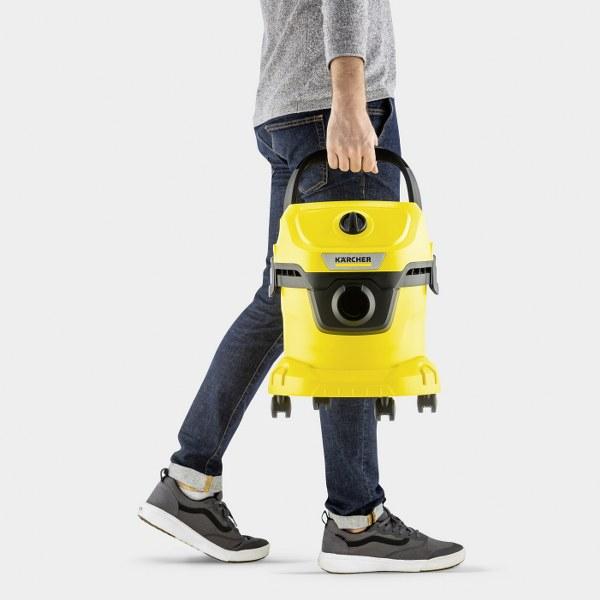 WD 3 V-17/4/20 je zmogljiv in energetsko učinkovit s porabo energije samo do 1000 W. Sesalnik, sesalna cev in talna šoba so popolnoma usklajeni - za najboljše rezultate čiščenje suhe, mokre, fine ali grobe umazanije. Sesalnik za suho in mokro čiščenje navdušuje s svojo kompaktno zasnovo in robustno 17-litrsko plastično posodo, 4 m dolgim kablom, 2 m dolgo sesalno cevjo in filtrsko vrečko iz flisa. Zahvaljujoč patronskemu filtru je mogoče sesati brez zamenjave filtra. Funkcija pihanja je uporabna za čiščenje težje dostopnejših mest, kjer ne moremo posesati. Kabel lahko shranite na kavelj, cel in talno šobo pa na ogrodje. Sistem zaklepanja Pull & Push omogoča preprosto odpiranje in zapiranje posode, podaljšano cev je mogoče odstraniti in dodatek priključiti neposredno na sesalno cev. Orodje ali kakšne majhne dele je mogoče odložiti na samem vrhu ogrodja sesalnika. Ergonomsko oblikovan ročaj poskrbi za udobno prenašanje.