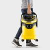 Sesalnik WD 5 P V-25/5/22 za mokro in suho čiščenje s porabo energije 1100 W dosega popolne rezultate sesanja vseh vrst umazanije - suhe, mokre, fine ali grobe. Sesalniku je priložena 25-litrska plastična posoda, 5-metrski kabel, 2,2 m dolga sesalna cev, preklopna talna šoba, ploščati nagubani filter ter filtrska vrečka iz flisa. Vgrajena vtičnica s samodejnim stikalom za vklop/izklop omogoča priklop električnega orodja. Umazanija, ki je posledica žaganja ali brušenja, se neposredno hitro posesa. Z vrtljivim stikalom lahko po potrebi prilagodite sesalno moč, zahvaljujoč patentirani tehnologiji pa lahko filter odstranite v nekaj sekundah, pri tem pa se izognete stiku z umazanijo. Gumb za čiščenje filtra vam omogoča za učinkovite očistite filter ter tako obnovite sesalno moč. Če odstranite podaljšano cev lahko pritrdite dodatke neposredno na sesalno cev, ki jo lahko namestite na glavo sesalnika in tako prihranite prostor. Mesto za odlaganje na sesalniku omogoča hitro in priročno shranjevanje cevi in talne šobe med krajšim odmorom od dela.