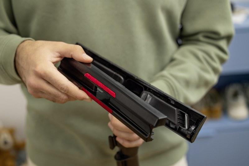 Vgrajena pršilna cev za dodatno udobje pri čiščenju. Dolga, zelo fleksibilna sesalna cev za dodatno udobje pri čiščenju. Ročaj s funkcijo zaklepanja za neprekinjeno pršenje pri čiščenju velikih tekstilnih površin.