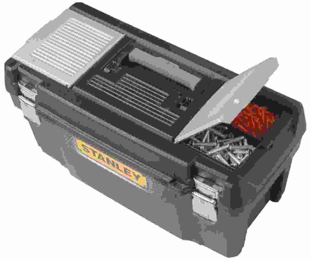 Stanley kovček za orodje s kovinskimi zapahami - Kovček za orodje omogoča optimalno shranjevanje vsega orodja, ki ga potrebujete - Kovinski zapahi z udobnim vrhnjim delom iz gume - Ročaj iz gume s termoplastičnim elastomerom omogoča bolj udoben oprijem - Integriran organizator za manjše dele ter vključen pladenj - Mere 40,0 x 20,9 x 18,3 cm