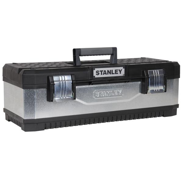 Stanley kovček za orodje iz galvanizirane kovine in plastike - Ojačan z dolgimi kovinskim tečajem za lažji transport večjih bremen - Robusten, močen in opremljen s širokimi zapahi iz nerjaveče kovine - Ergonomično oblikovan ročaj iz dveh materijalov (guma in plastika) - Prostorno ohišje iz kovine v 3 najbolj zaželjenih velikostih - V zareza na vrhnji strani pokrova za žaganje in morebitne popravke na delovnem mestu - Prenosen pladenj za ročno orodje in manjše dele - Zapahi za zaklepanje kovčka skrbijo, da je vaše orodje varno shranjeno - Mere 66,2 x 29,3 x 22,2