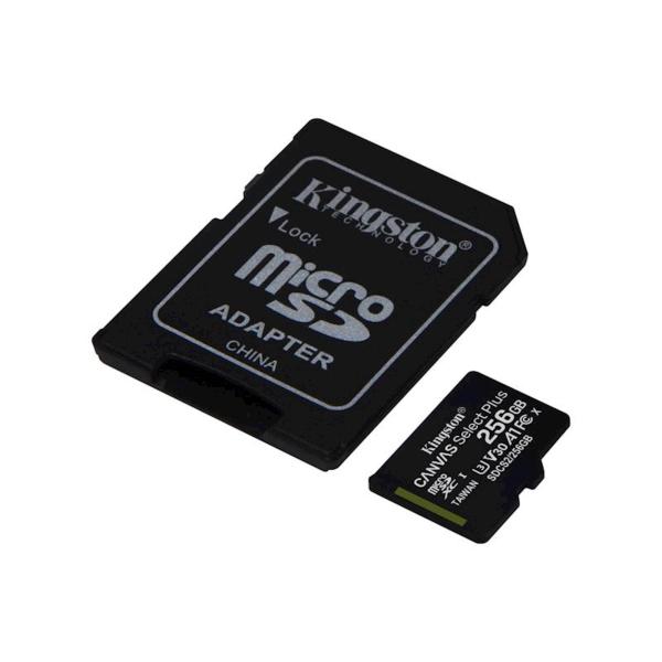Spominska kartica kapacitete 256GB je zanesljiva in idealna za posnetke in fotografije v visoki ločljivosti.