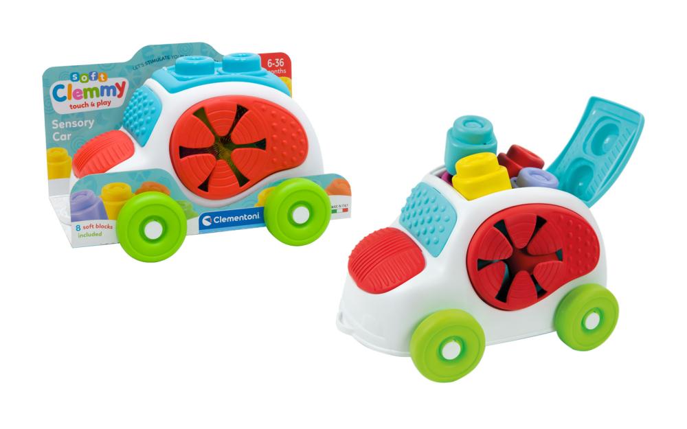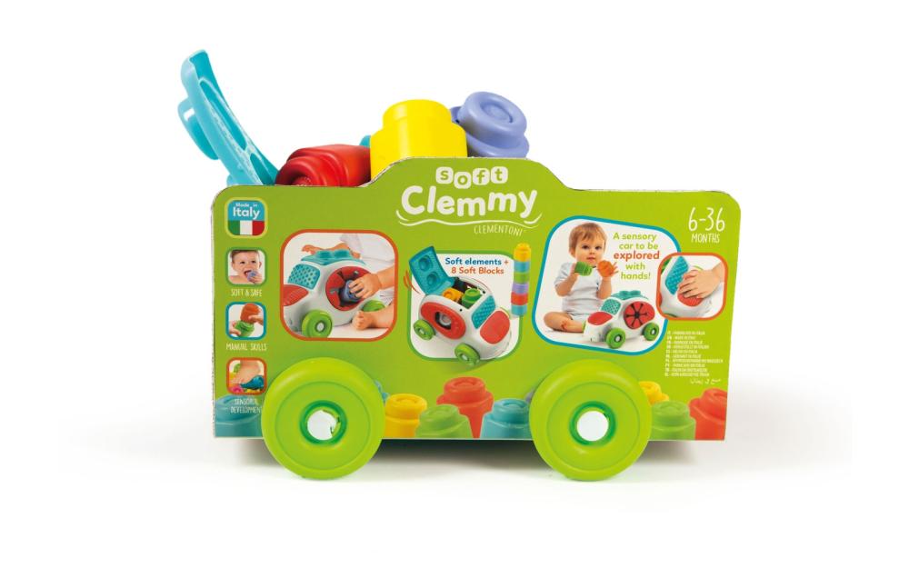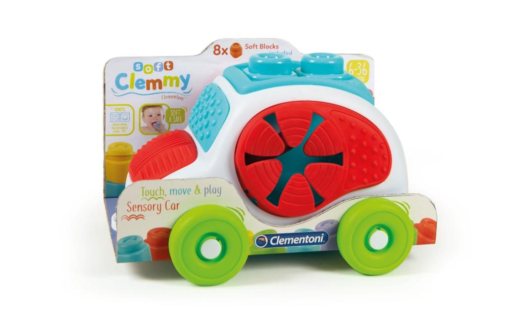 Avto linije soft Clemmy je odlična igača za vaše najmlajše. Set vključuje barvit avto in 8 Clemmy mehkih kock. Avto krasi varen dizajn in možnost pranja, tako avta kot priloženih Clemmy kock. Različne tipalne površine spodbujajo senzorični razvoj otroka in vnašajo dodatno zabavo v raziskovanje oblik in barv. Primerno za otroke od 6. do 36. meseca starosti.