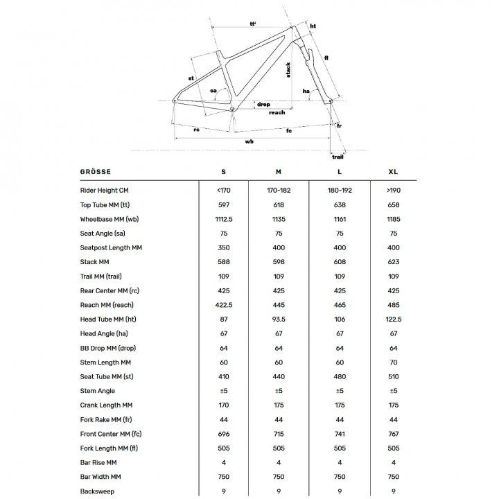S kotom prednje vilice 67°, dolgim sprednjim delom in kotom sedeža 75° nudi optimalno orožje za napad na strm in ohlapen teren s popolno porazdelitvijo teže.