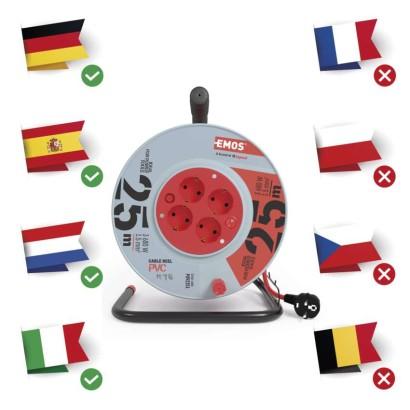Kolutni podaljšek 25 m / 4 vtičnice / rdeči / PVC / 230 V / 1,5 mm2