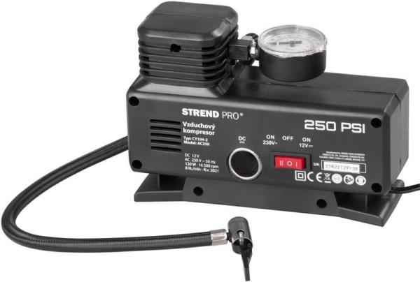 Zračni kompresor AIRCOM AC250 je zanesljiv pomočnik za vsak dom. Primeren je za delo s stisnjenim zrakom, s tlakom do 250 PSI. Prednost je preprostost dizajna, zaradi katere se prilega skoraj vsaki polici. Opremljen je s 3,5 m dolgim kablom in manometrom. Za pravilno delovanje ga le priključite na električno omrežje (230 V / 12 V) ali na vtičnico za cigaretni vžigalnik, kar boste cenili na poti.