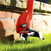 Je lahek enoročni trimer z nitko. Ima zmogljiv 250 W motor in 23 cm rezalni red za učinkovito obrezovanje majhnih vrtov. Preizkušen mehanizem črpanja Black and Decker za enostavno podajanje vrvice. Preprosta funkcija za upravljanje kablov. Uporabite nadomestno tuljavo in vrvico Black and Decker A6226-XJ. Lastnosti: - Moč: 250 W - Širina reza: 23 x 38 cm - Premer vrvice: 1,5 mm - Hitrost rezanja vrvice: 11500 vrt/min - Priložena vrvica: 6 m - Teža: 1,3 kg