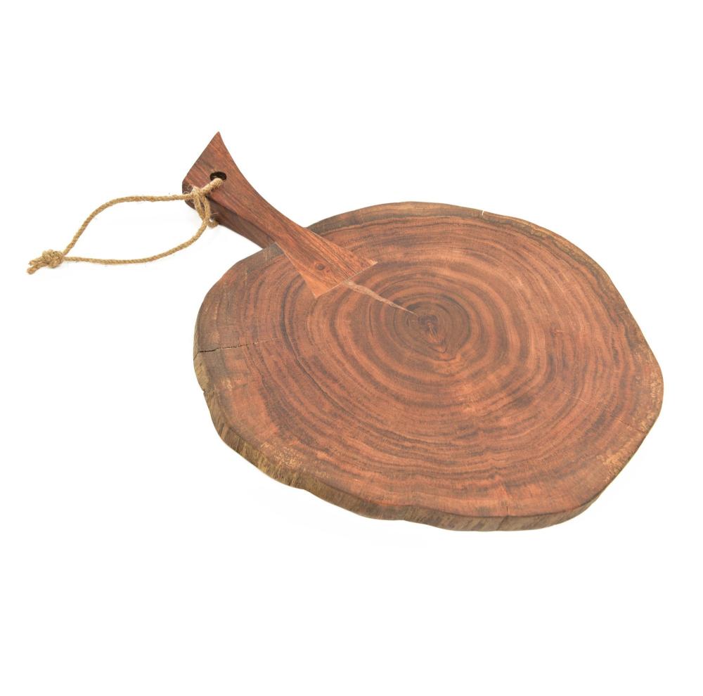Okrogel lesen kosir oz. deska za rezanje Natur je idealna tudi za serviranje narezkov kar pred gosta. Po uporabi jo lahko obesite na odprtino v ročajo.