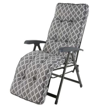 Lena Plus stol z naslonom za noge. 28-pozicijski okvir s kvadratnim naslonjalom. Konstrukcija iz ovalnih jeklenih cevi 32 x 18 mm ovalne, prašno lakirane. Prešita blazina, tip Box Model. Polnilo: 8-10 cm narezana floke gobica. Zgornji del blazine je izdelan iz bombažne tkanine, spodnji del je iz polipropilena - povezan s trakom iz bombažne tkanine. Okrašena s pisanim poliestrskim obrobom z vrvico. V zgornjem delu naslonjala je žepek za celotno dolžino hrbta, ki se lahko pritrdi na okvir, v spodnjem delu je pritrjen na okvir z gumijastim trakom. Stol je opremljen z vzmetno prevleko.