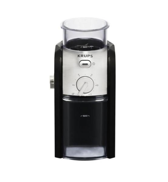 Mlinček za kavo KRUPS GVX242 deluje z močjo 100 W in omogoča 17 različnih stopenj mletja kave, tako da lahko izbirate med fino, grobo mleto kavo in vsem vmes. Mlinček zmore zmleti od 2 do 12 skodelic kave. Mlinček ima zanimiv in praktičen dizajn, ki združuje nerjaveče jeklo s črno plastiko. Kava katera je sveže mleta ima veliko boljši okus. Poleg kavnih zrn lahko v njem meljete tudi začimbe, zelišča in oreščke. Posoda za mletje kavnih zrn je odstranljiva in je primeren za pomivanje v pomivalnem stroju, kar pomeni, da lahko zmleta zrna enostavno stresete v posodo za kavo ali posodo za kuhanje. Mlinček je opremljen je s posodo 200 g z nepredušnim pokrovom, ki ohranja kavna zrna in njihovo aromo. Mlinček je enostaven za čiščenje, mlinski kamni so odstranljivi in za čiščenje lahko uporabite krtačo za čiščenje, ketera je priložena k samemu artiklu.