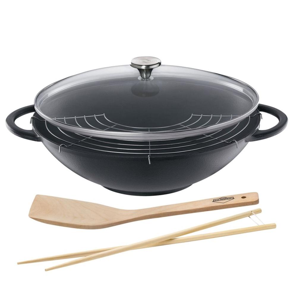 Litoželezni vok je idealen za dušenje, pečenje, praženje in cvrtje. Lito železo hitro absorbira toploto in jo optimalno porazdeli po celotni ponvi. Na ta način je mogoče v kratkem času zmanjšati porabo energije, hkrati pa iz živil izvabiti najboljšo aromo. Vok Provance je primeren za vse vrste kuhalnih površin, ključno z indukcijo, ročaj pa je odporen tudi na temperaturo v pečici do 250°C. Poleg steklenega pokrova v kompletu prejmete mrežo iz nerjavečega jekla ter leseno lopatko in paličice za prave azijske užitke.