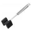 LAGOSTINA KLADIVO ZA MESO iz linije Cucinieri z dolžino 27 cm je izdelano iz dvostranskega silikonskega kladiva, ki bo poskrbelo, da bo meso še okusnejše in mehkejše. Glava kladiva je na eni strani gladka, na drugi pa nazobčana. Najpogosteje se uporablja gladka površina, saj služi za mehčanje površine in izenačitev debeline perutnine in zrezkov, da se spečejo enakomerno. Druga nazobčana stran kladiva pa se uporablja za mehčanje žilavih kosov mesa, saj ti zobje raztrgajo vlakna, zaradi katerih je meso trše, hkrati pa omogočajo, da marinada laže pronica v meso.