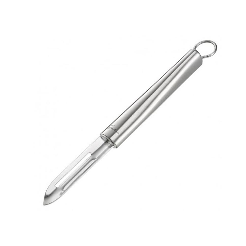 LAGOSTINA LUPILEC CUCINIERI z dolžino 20,3 cm je odličen kuhinjski pomočnik. Z njim boste brez težav olupili zelenjavo ali sadje z najtršim olupkom. Izdelan je iz najkakovostnejšega nerjavečega jekla 18/10, odpornega proti koroziji in živilskim kislinam, kar mu zagotavlja dolgo življenjsko dobo in funkcionalnost. Ergonomsko oblikovan ročaj omogoča varen in udoben oprijem, odprtina na koncu ročaja pa omogoča obešanje. Primeren je za pomivanje v pomivalnem stroju.