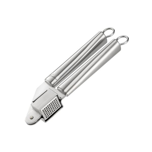 LAGOSTINA STISKALEC ZA ČESEN CUCINIERI italijanske blagovne znamke Lagostina je praktično kuhinjsko orodje, ki vam bo omogočilo hitro in enostavno stiskanje česna v vašo najljubšo jed ali omako. Konstrukcija z dolžino 21,2 cm stiskalnice je izdelana iz kakovostnega nerjavečega jekla, ki je zelo odporno proti koroziji in živilskim kislinam. Stiskalec ima na obeh ročajih priročni ušesi za obešanje. Lahko ga pomijete v pomivalnem stroju.