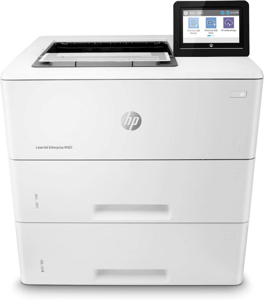 Tiskalnik HP LaserJet Enterprise M507x, je odlična izbira za srednje velika podjetja, ki potrebujejo zanesljiv in kakovosten laserski tiskalnik, ki natisne 43 strani na minuto pri ločljivosti 1200 x 1200 dpi. Profesionalni izpisi, visoka kapaciteta papirja, standardna vhodna 2x 550-listna predala, več spomina ter tiskanje iz mobilnih naprav. Novi model M507x ima vgrajeno Wi-Fi ter Bluetooth povezavo, dostop do aplikacij pa vam olajša 10,92cm barvni zaslon na dotik.