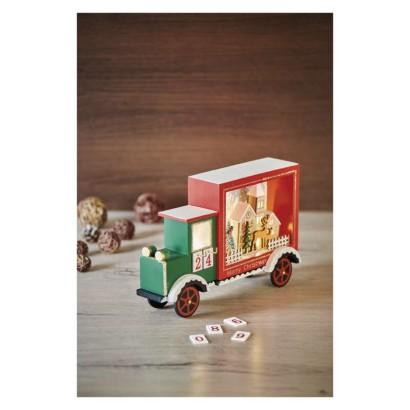 LED adventni koledar, lesen avto, 20x30,5 cm, 2x AA, notranji, topla bela, časovnik