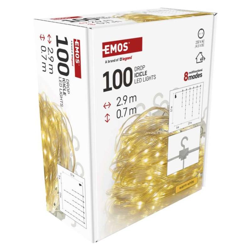 LED božična drop veriga – ledene sveče, 2,9 m, zunanja in notranja, topla bela, programi