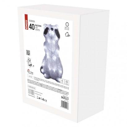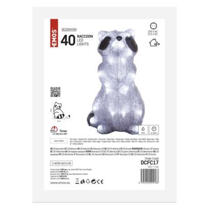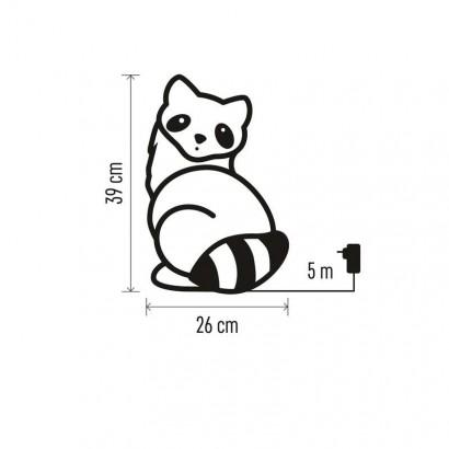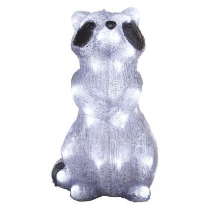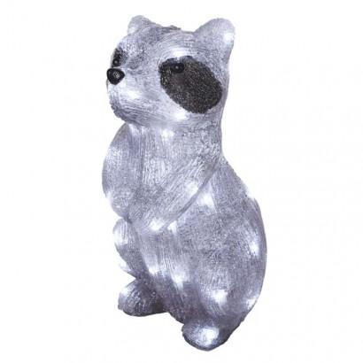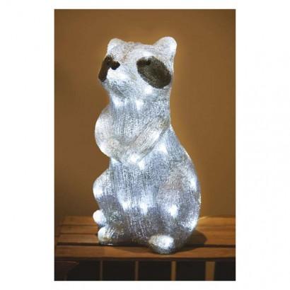 LED dekoracija – svetleči rakun, 39 cm, zunanja in notranja, hladna bela, časovnik