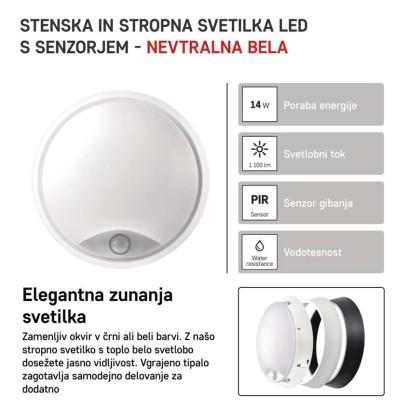 LED svetilo nadometno ZURI, okroglo, s senzorjem, 14W, nevtralno bela