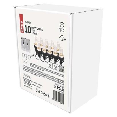 LED svetlobna veriga – 10x party lučke prozorne, 4,5 m, zunanja in notranja, hladna bela