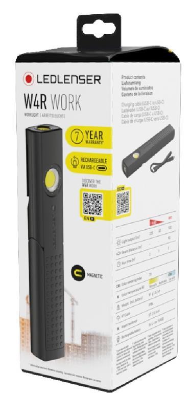 W4R Work je kompaktna, zmogljiva in izjemno natančna svetilka. Odlično svetlobo svetilka zagotavlja prek reflektorja s katerim vidite vse detajle, ali pa preko LED luči za osvetlitev širokega območja. Zahvaljujoč vgrajenemu magnetu in vrtljivemu stojalu je svetilko moč namestiti točno tja kjer jo potrebujete. Opremljena je tudi z zaponko, s pomočjo katere jo lahko brez problema namestite na prsni žep. Svetilka ima tudi varnostno varovalo, ki preprečuje nenameren vklop in tako poskrbi, da se baterija ne izprazni. Polnite jo enostavno s pomočjo priloženega USB-C kabla.