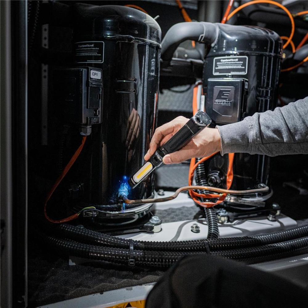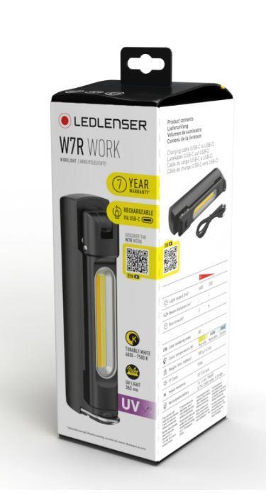 W7R Work je vrhunska robustna, zmogljiva in izjemno natančna delovna svetilka. Namenjena je vsem, ki potrebujejo stalno nastavljivo barvno temperaturo, glede na potrebo uporabe in dodatno UV svetlobo v glavi svetilke za odkrivanje puščanja ali preverjanje dokumentov. Opremljena je z zložljivo in vrtljivo glavo, ki osvetli tudi najožje prostore. Natančni svetlobni snop zagotavlja potrebno natančnost, poleg tega pa ga je mogoče nenehno prilagajati med toplo belo in hladno belo svetlobo. Zahvaljujoč vgrajenemu magnetu, stojalu in nosilcu je svetilko moč namestiti točno tja kjer jo potrebujete. Svetilka ima tudi varnostno varovalo, ki preprečuje, da bi se svetilka nenamerno vklopila in izpraznila baterijo. Polnite jo enostavno s pomočjo priloženega USB-C kabla.