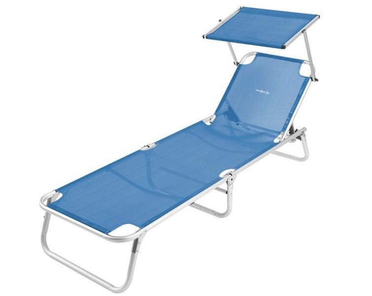 Mere (d/š/v): 189/61/26 cm, zložen 79/61/16,5 cm, aluminijasto ogrodje, 3 noge, nastavljiv naslon, teža 5,2 kg, nosilnost do 120 kg, Syntex (30% poliester, 70% PVC) sive ali modre barve.