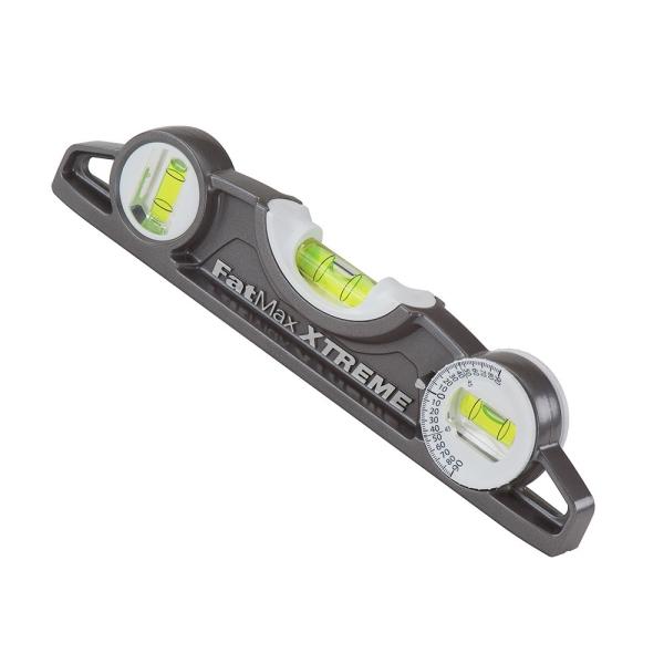Stanley Fatmax magnetna TORPEDO libela 250 mm - Trdne kockaste fiole za največjo natančnost znotraj razreda: 0,5 mm/m - Ojačana središčna fiola za izboljšano vidnost iz vseh strani - Kovinski žlebič v V-obliki za uporabo na ceveh - Odlični zemeljski magneti, 2x močnejši od osnovnih trakov