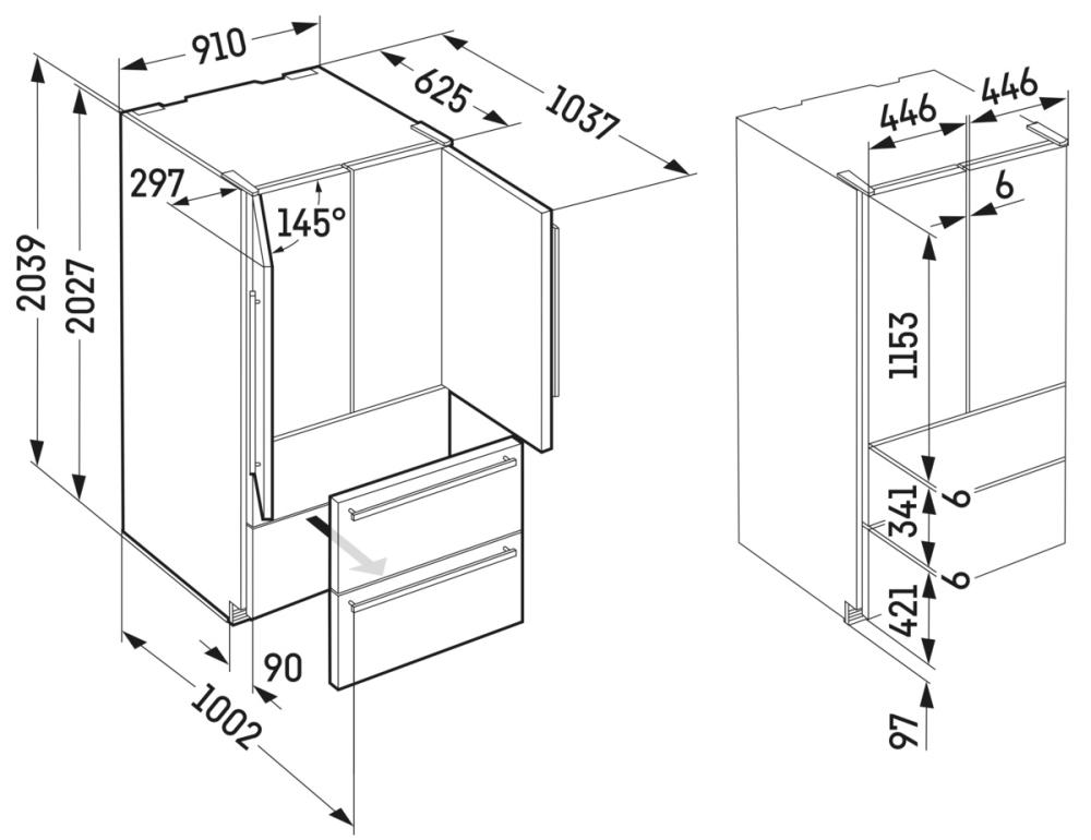 - Predal z izvlečnim sistemom v zamrzovalnem delu: Popolnoma raztegljive teleskopske tirnice s samozapiralnim mehanizmom