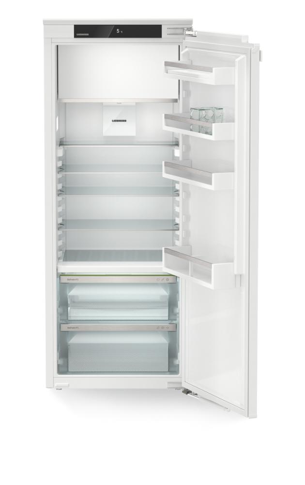 Zamenjava strani odpiranja vrat integriranega predala za zamrzovanjePri vgradnji naprave Liebherr v pohištveno nišo si ne želite časovno zamudnega spreminjanja odpiranja vrat na zamrzovalnem predalu? Z drsnikom je to opravljeno v nekaj sekundah in to brez posebnega tehničnega znanja. Preprosto potisnite drsnik na zamrzovalnem predalu z desne v levo – končano. Tako prihranite veliko časa. |