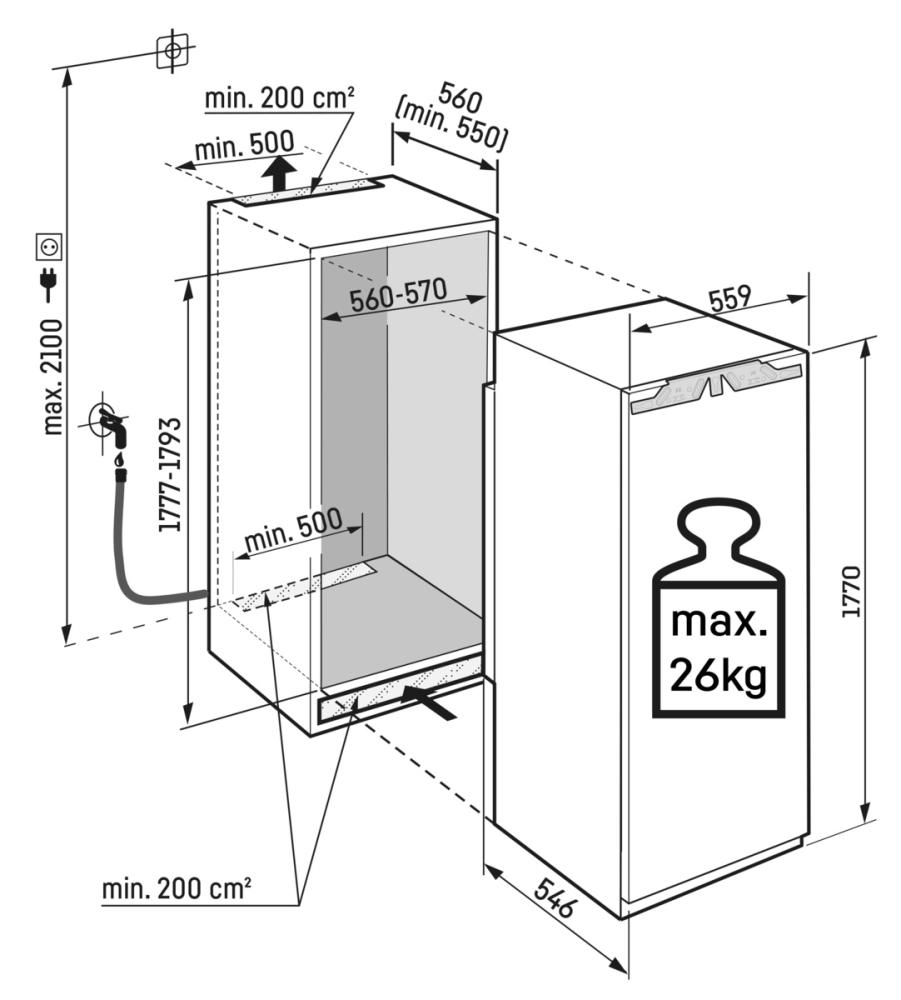 - Mere niše: višina/širina/globina: 177,7 - 179,3 / 56 - 57 / 55,0 cm