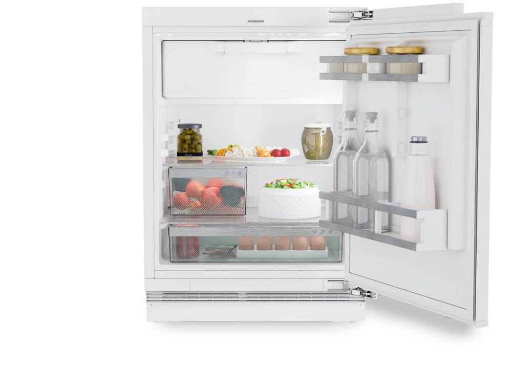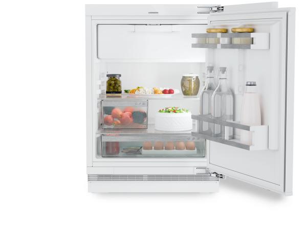 Priročno prestavljanje steklenih polic po višiniŽelite v hladilniku shraniti veliko posodo? Potem preprosto prestavite steklene police na želene višine. Zahvaljujoč priročni nastavitvi višine je to mogoče hitro in individualno — tudi s hrano na policah. |