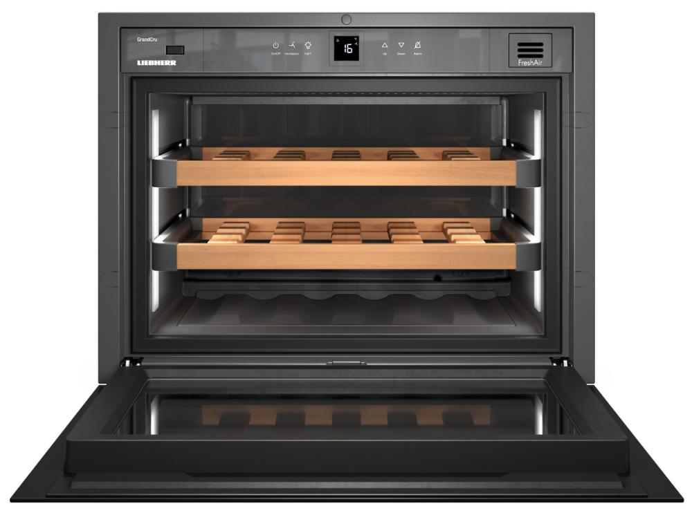 Idealna zračna vlagaPravilna zračna vlaga je pomemben dejavnik pri shranjevanju vin. Plutovina ostane prožna in se ne izsuši. Da bodo plutovinasti zamaški v največji možni meri ohranili vlago, je treba vina hraniti v ležečem položaju. Z več kot 50-odstotno zračno vlago vinske vitrine zagotavljajo najboljše pogoje. Po potrebi lahko zračno vlago v vinskih klimatskih vitrinah reguliramo s prezračevalnim gumbom. |