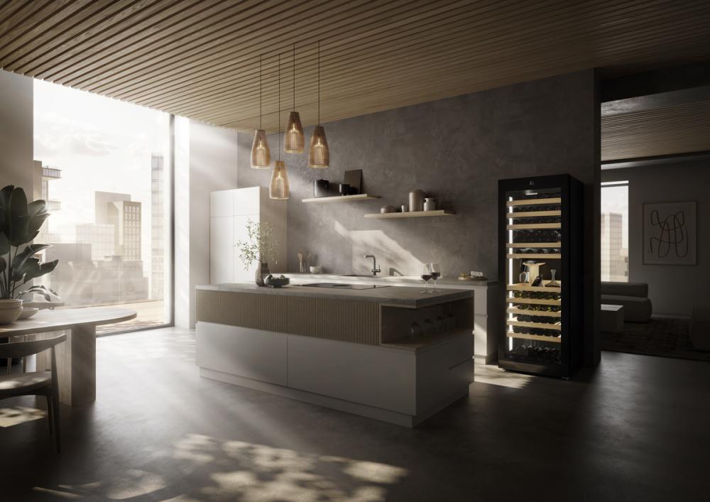 Ločevalnik temperaturnih območijŠe večja prilagodljivost pri shranjevanju vinskih steklenic. Modeli Vinidor Selection so opremljeni z lesenimi palicami FlexFit. Te je mogoče namestiti kot dodatke za modele Vinidor s plastičnimi policami. |
