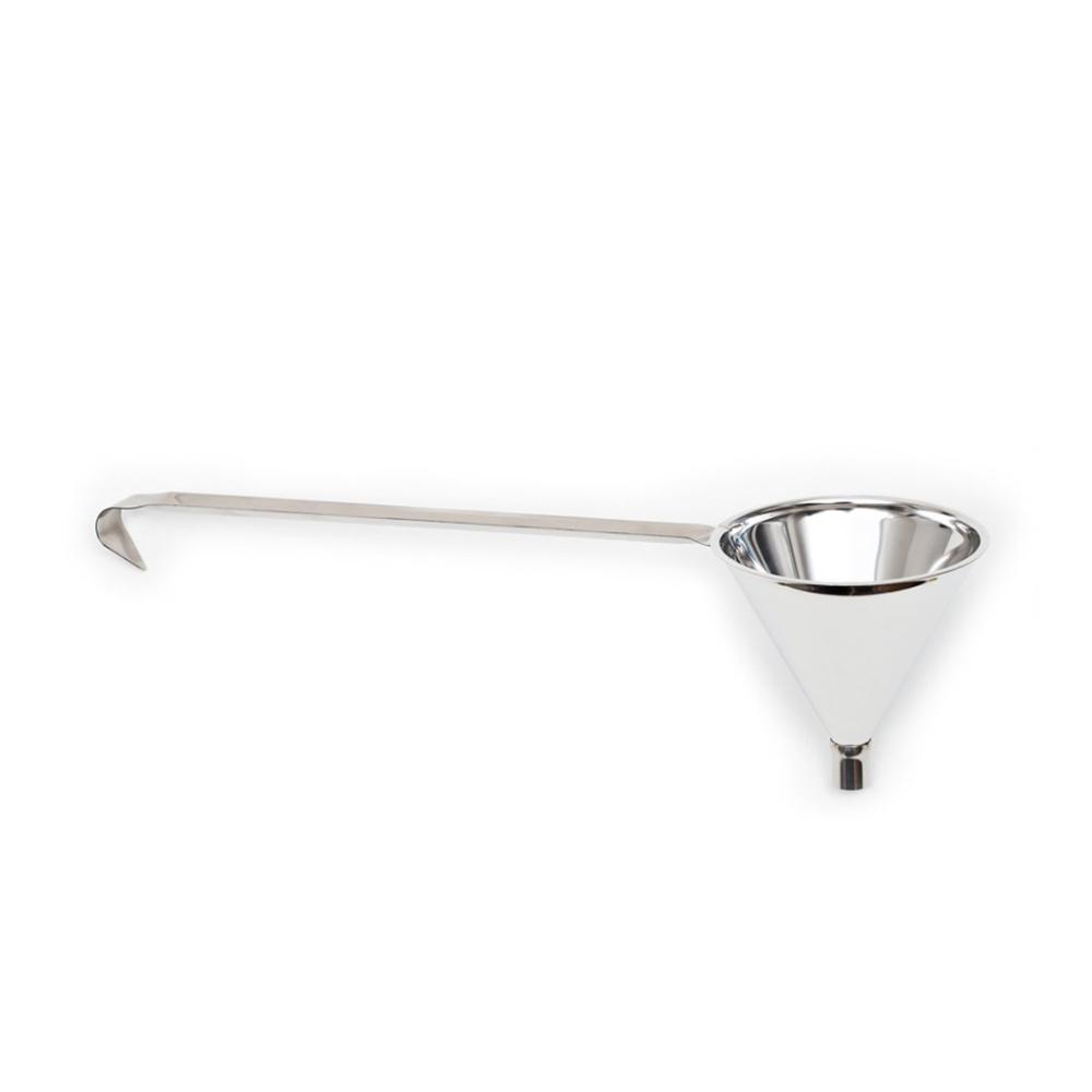 Eva lijak za vlivanje testa je izdelan iz poliranega nerjavečega jekla 18/8 z dolžino 40 cm. Premer lijaka je 10 cm, premer izliva pa 1,5 cm. Lijak je odličen za pripravo ocvrtih (kvašenih) gnezdec.