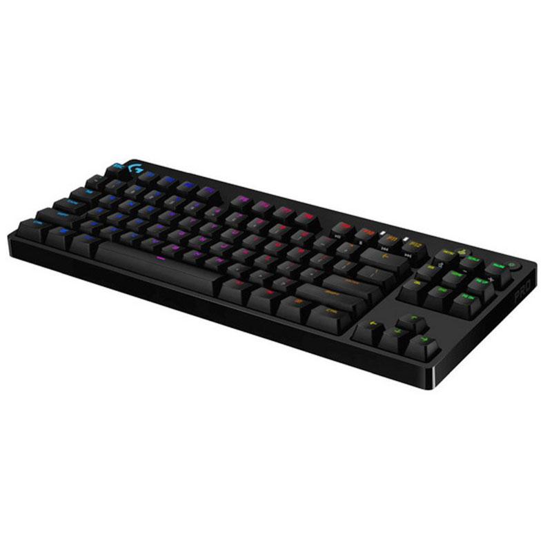 LOGITECH G PRO je kompaktna igralna tipkovnica brez numeričnega dela, ki jo odlikujejo natančna in odzivna mehanska stikala GX Blue. Opremljena je z LIGHTSYNC RGB osvetlitvijo, ki jo lahko prilagajate s programsko opremo G HUB. Za enostavno prenašanje poskrbi snemljiv Micro USB kabel, za večje udobje pri uporabi pa trije nakloni tipkanja in gumirane nogice. Spodnja stranica tipkovnice je iz jakla, ki pripomore stabilnosti in togosti.