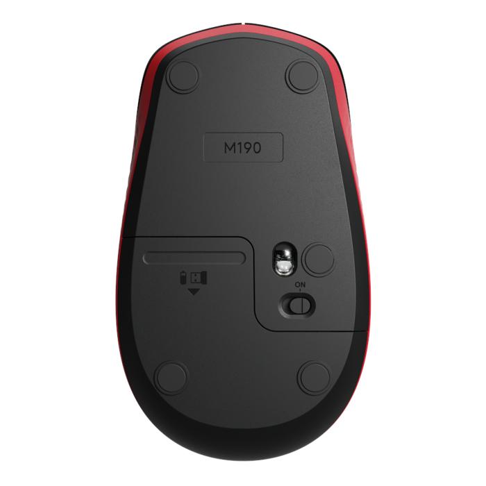 LOGITECH M190 je brezžična miška z udobno oblikovano obliko, ki je namenjena srednje do velikim dlanem. Povezava deluje do 10m, življenjska doba baterije pa je do 18 mesecev v sobni temperaturi in normalni uporabi.