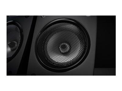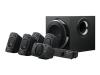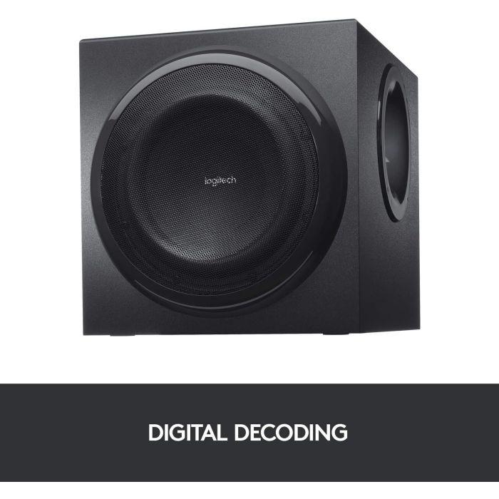 Odlični, brutalno močni 5.1 računalniški zvočniški sistem s THX certifikatom, ki vam omogoča, da slišite vsak detajl vse okoli vas v igrah, glasbi in filmih. Poleg 5 satelitov in nizkotonca sta tu konzola za nadzor glasnosti na vseh zvočnikih, nastavljanej vhodov in še več. Priložen pa je tudi brezžični daljinec, da vam ne bo potrebno zapustiti udobnega kavča ali postelje. Omogoča dekodiranje Dolby Digital 5.1, zočniki pa pretvorijo dvokanalni stereo zvok v obkožijoči zvok! Satelite lahko tudi namestite na zid in sobo spremenite v pravi domači kino.