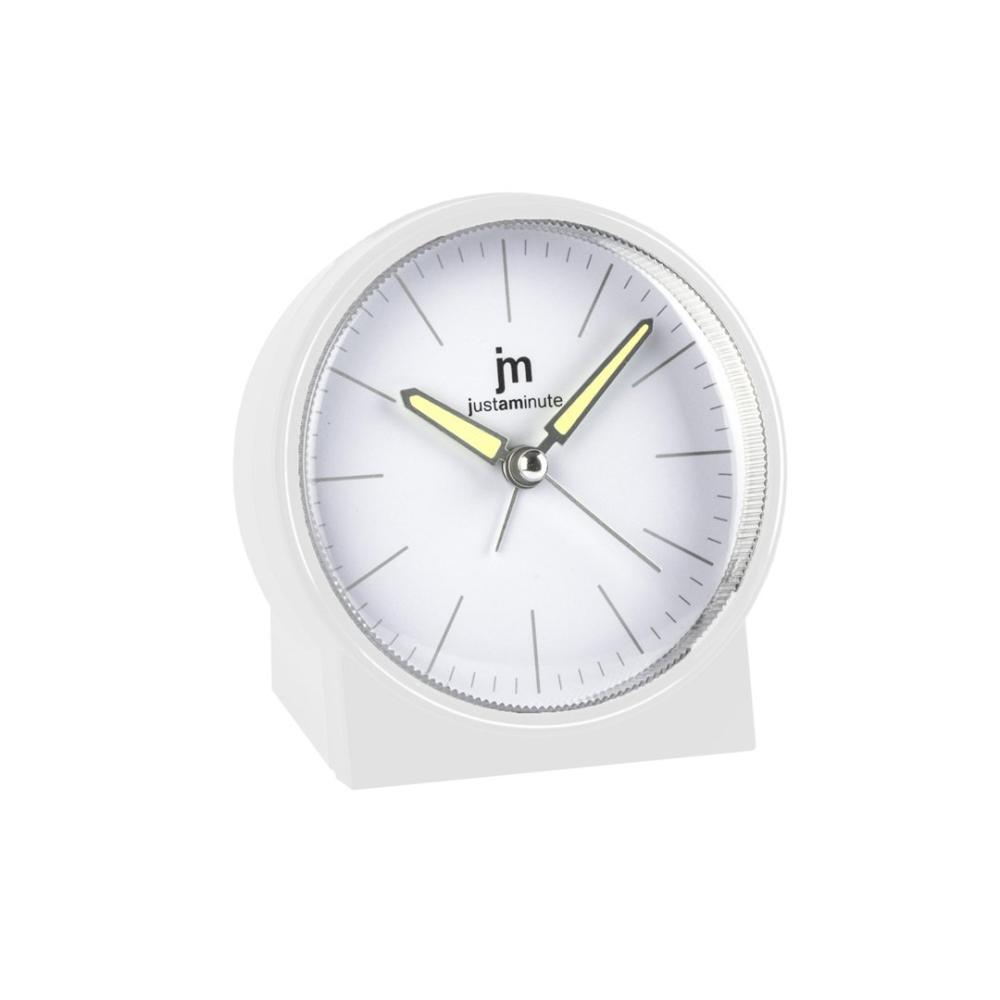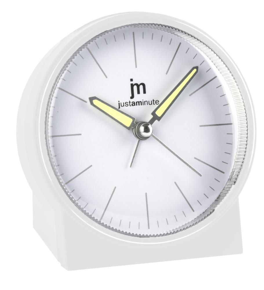 Analogna LOWELL OKROGLA BUDILKA v beli barvi z belo številčnico je oblikovana z italijanskim pridihom. Poganja jo poseben tihi mehanizmom SWEEP MOVEMENT, ki kazalcem omogoča nemoteno premikanje, brez glasnega tiktakanja. Budilko odlikuje možnost osvetlitve številčnice (lučka) in naraščajoči zvok alarma (crescendo) s 5 minutnim dremežem.